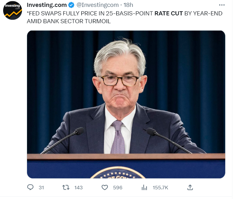 It’s interesting that the markets have quickly flipped from a position of the central bank raising interest rates (“higher for longer”) to interest rate cuts again. Suddenly, the US is in trouble.