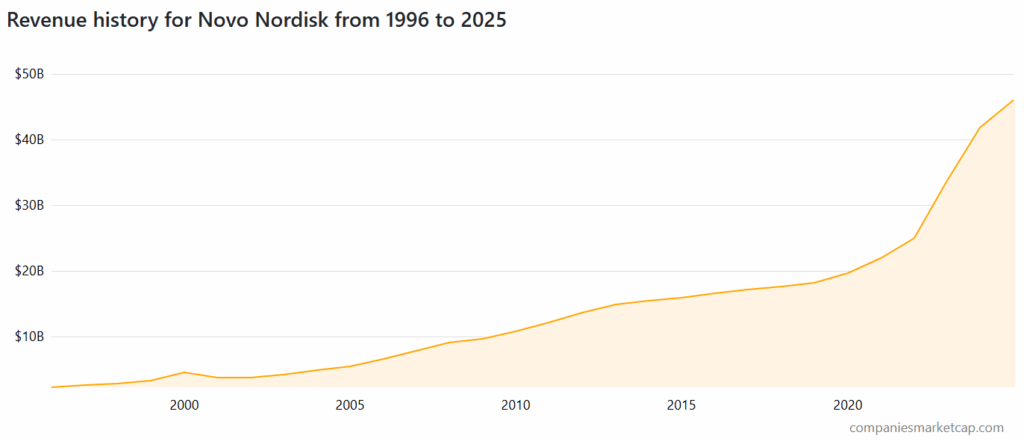 Novo Nordisk appears to grow its revenue consistently over time. Of course, it’s hit a home run with its weight loss drug, Ozempic. As I mentioned in the Eli Lilly analysis, there is an almost unlimited demand for weight loss in our current society and Ozempic is the industry leader.