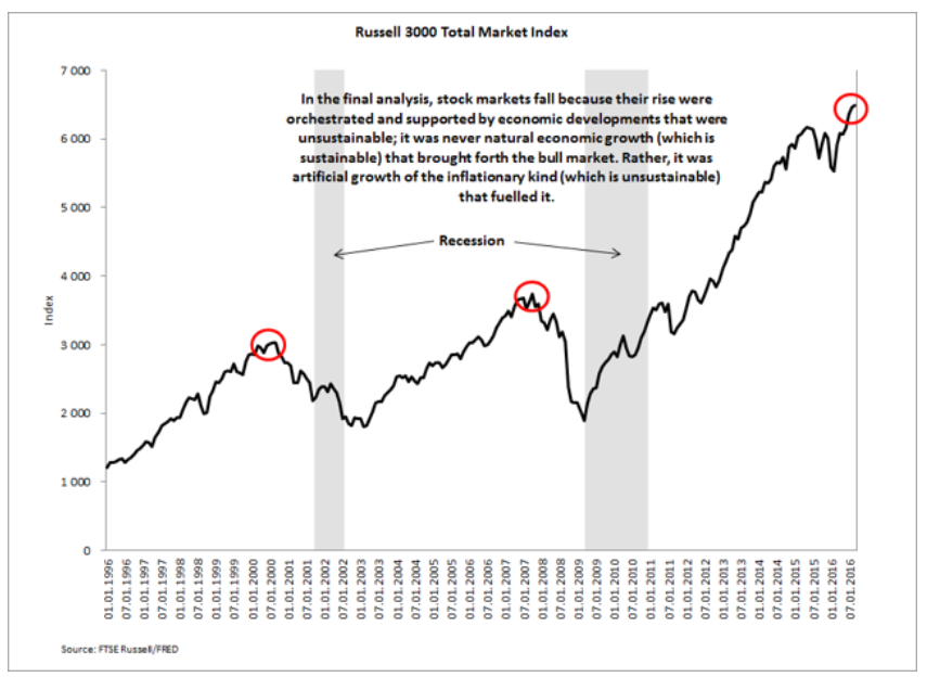 Others say that the stock market crash causes recessions, not vice versa. Companies’ values get overinflated and must be corrected when reality sets in. Investors expect earnings always to exceed predictions and punish the stocks that don’t. In a way, it’s a series of manias followed by attempts at being rational for a time.