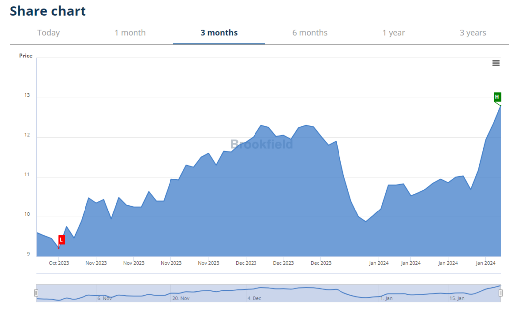 In the past week, since I bought some preferred shares in Brookfield Office Properties, the preferred shares are up 15%.