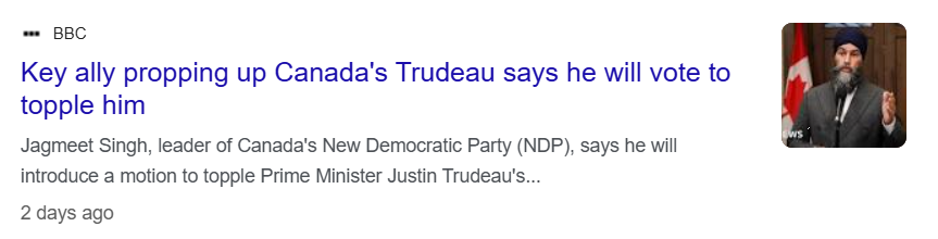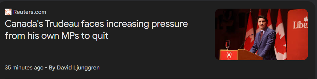 All this to say, it looks like the Canadian government is certain to fall in early 2025. The current leader is trying to hang on to power (and technically he can stay in power until the Fall of 2025). But it doesn’t look good right now.
