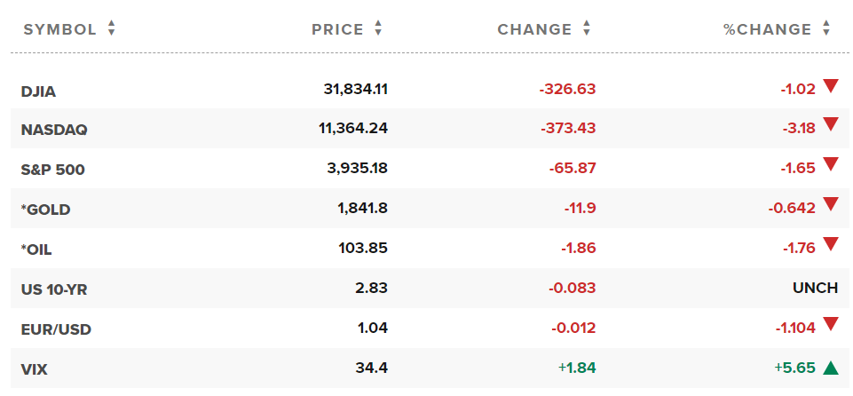 The Nasdaq market has been one of the hardest hit. Down from around 16,000 to 11,300 this week. Down 27% year-to-date.