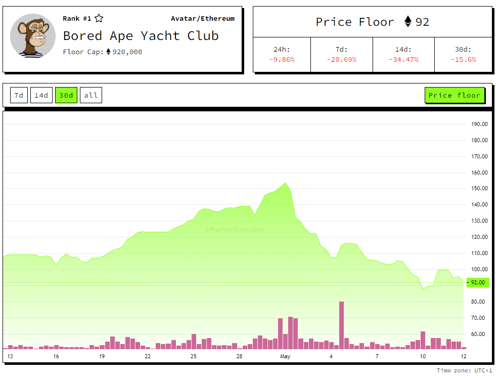 We can see that “Bored Apes” went from 153 ETH floor price to 92 ETH in the past 2 weeks.