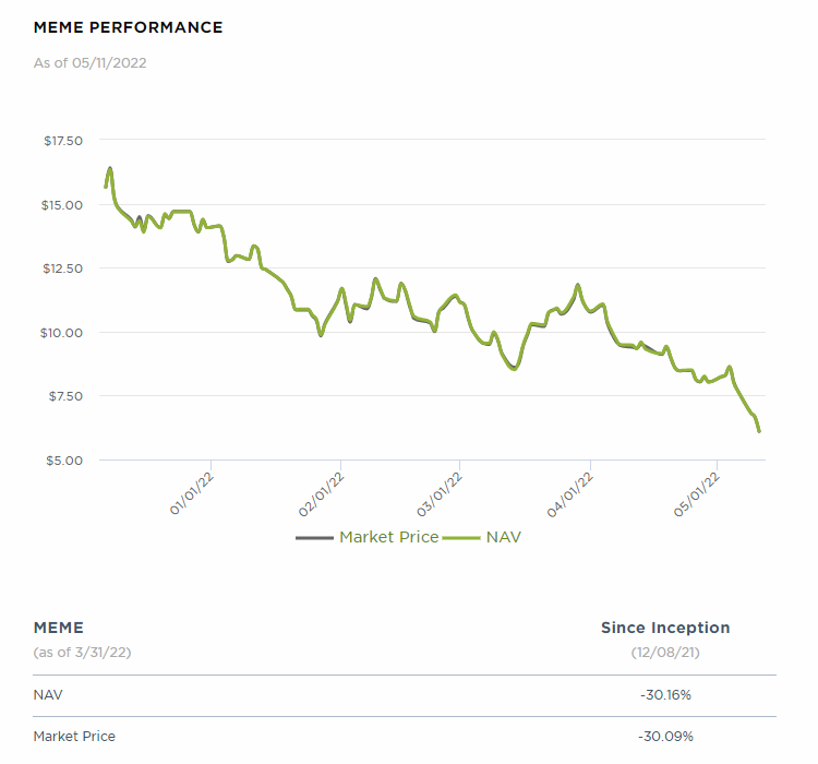 The MEME stock ETF has lost 30% since Dec 8, 2021.