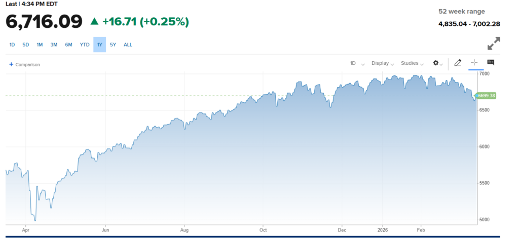 I guess you can argue that the stock market has stopped rising since the end of last year. We barely touched 7000 (7002 is the high), and it’s been trading basically sideways since.